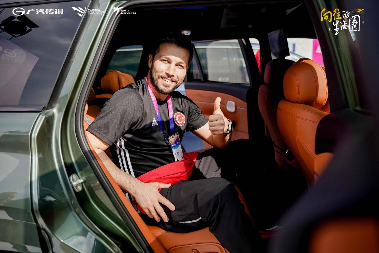 比赛期间,不同国家的选手途径场馆外,被精心布置的广汽传祺展区吸引,踊跃上车亲身体验。一名外国选手在体验过向往S7后排座椅按摩带来的极致舒适感后,不禁为其竖起大拇指点赞!