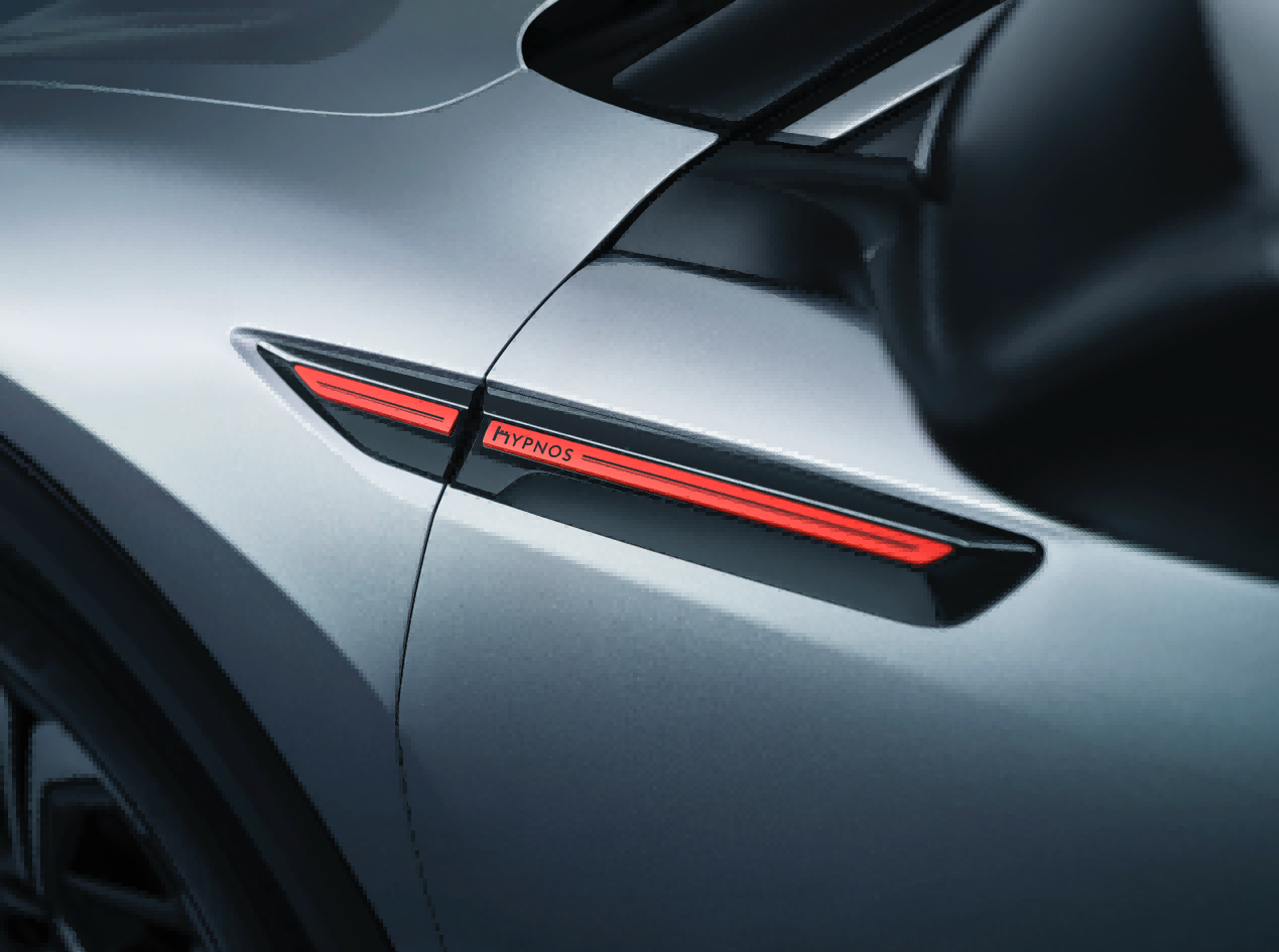 后三角窗流光镂空丝印交融,尽显车辆高级和优雅。专属营火红标识套件,包括HYPNOS镶嵌式定制标识和C5 X专属标识,搭配带镀铬饰条防擦条,在一抹纯净之中如画龙点睛般,更添了一份精致高级感。