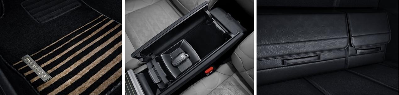 可卷缩式行李箱隔板+行李箱地板带导轨+行李箱不锈钢门槛装饰件+行李箱电源,以及专属HYPNOS舒缓脚垫、双格中央扶 手置物箱、行李箱收纳箱,设计别具匠心,分置有序,精心配置你的旅程规划,无论多大的旅程梦想,统统装下。